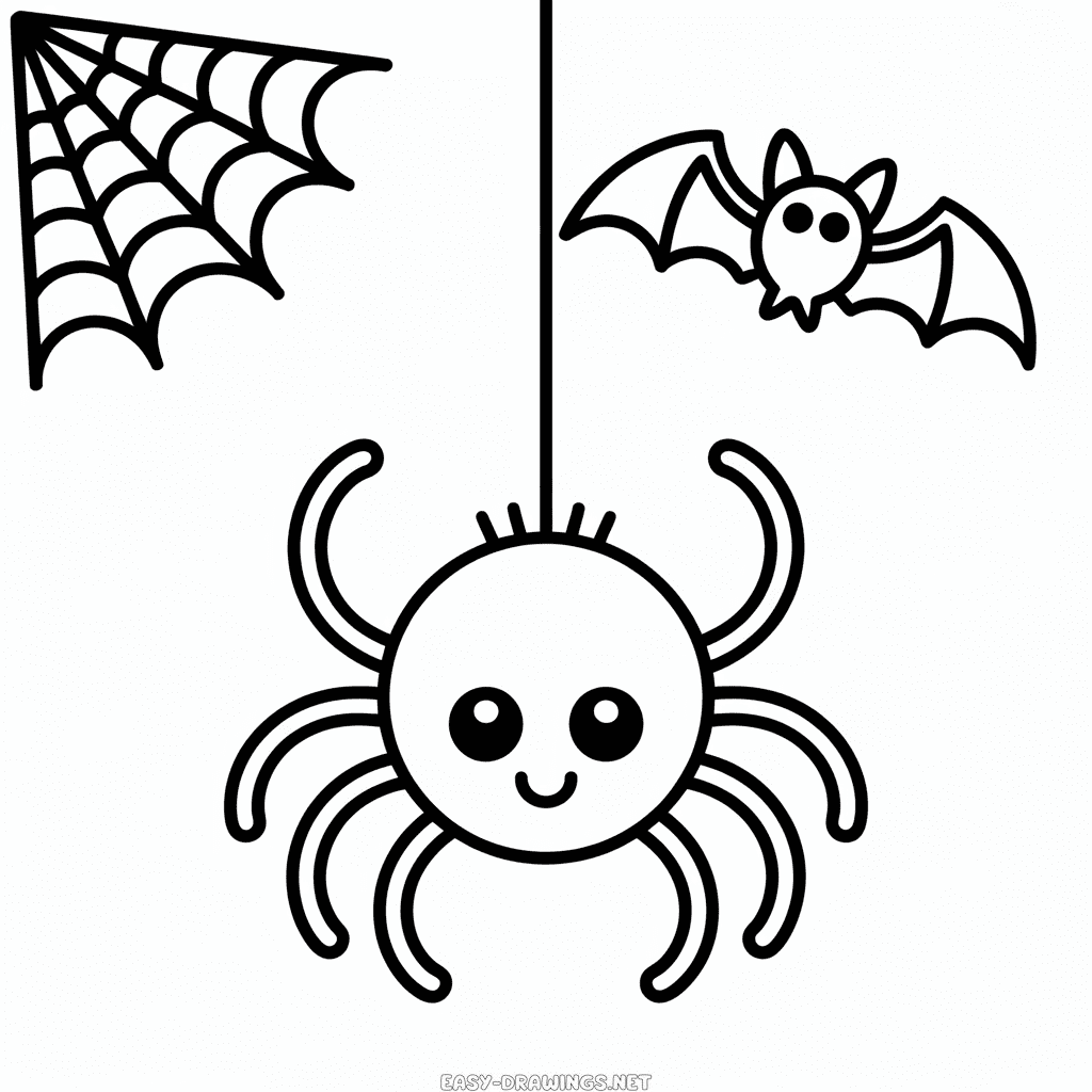 Simple drawing of Cute Halloween Spider to print for free, featuring a friendly spider perfect for Halloween fun. Simple coloring page to reproduce or color for kids. High-resolution image, perfect for A4 PDF printing in black and white.