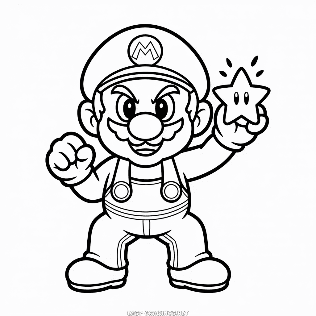 Simple drawing of Evil Mario to print for free, featuring a playful but mischievous version of the beloved video game character. Simple coloring page to reproduce or color for kids. High-resolution image, perfect for A4 PDF printing in black and white.
