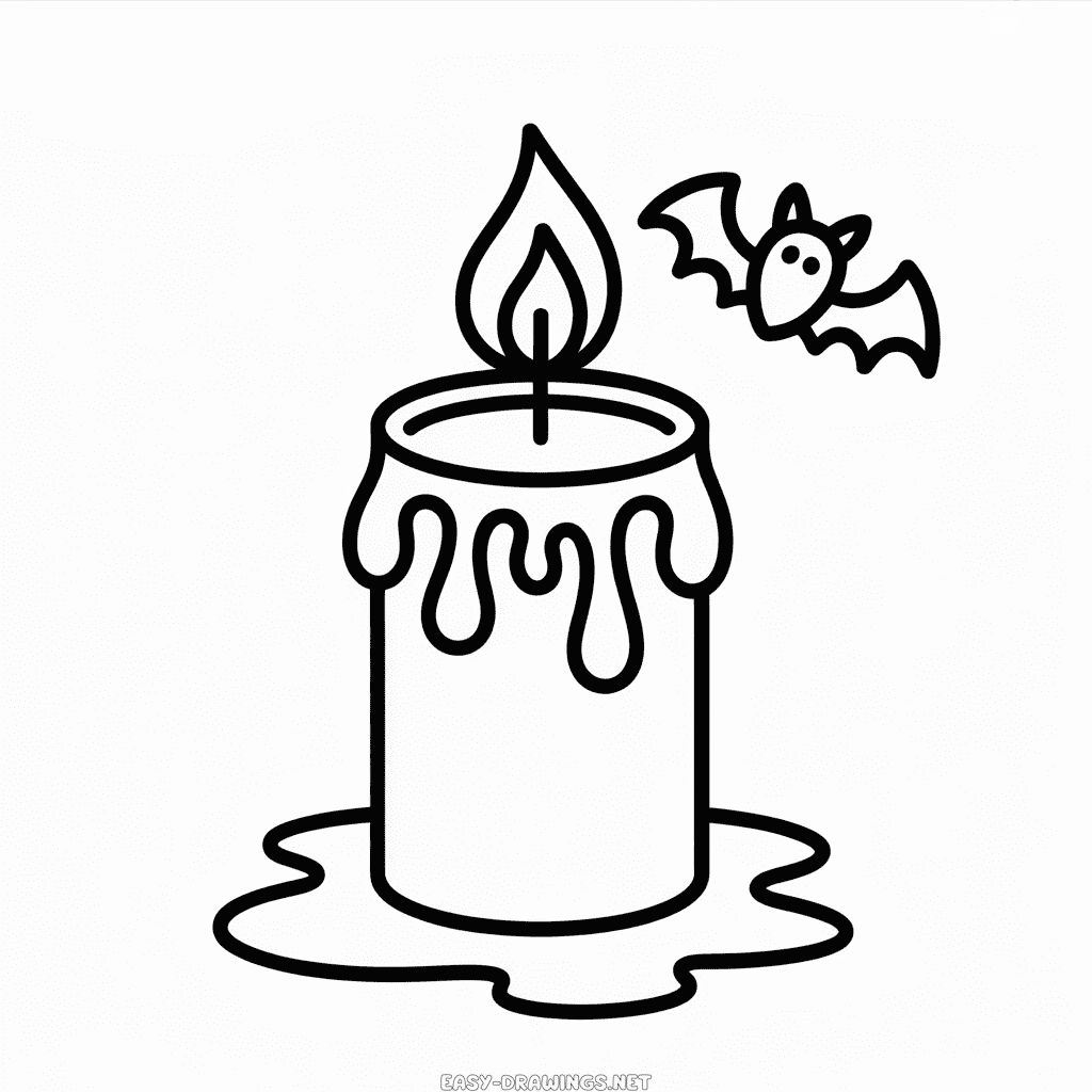 Simple drawing of a Halloween candle to print for free, featuring a spooky yet friendly flame that’s perfect for the Halloween season. Simple coloring page to reproduce or color for kids. High-resolution image, perfect for A4 PDF printing in black and white.