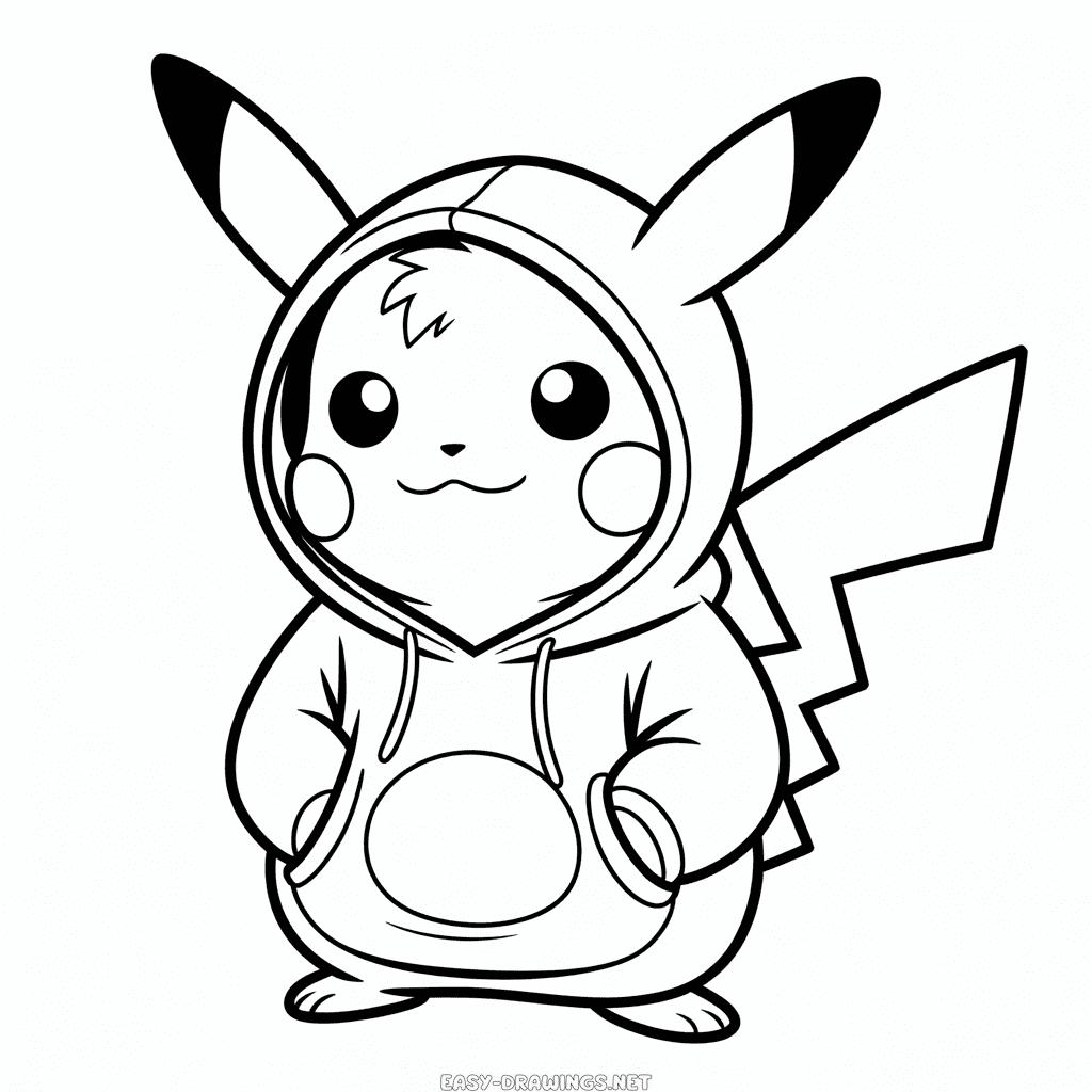 Pikachu in Hoodie Easy Drawing